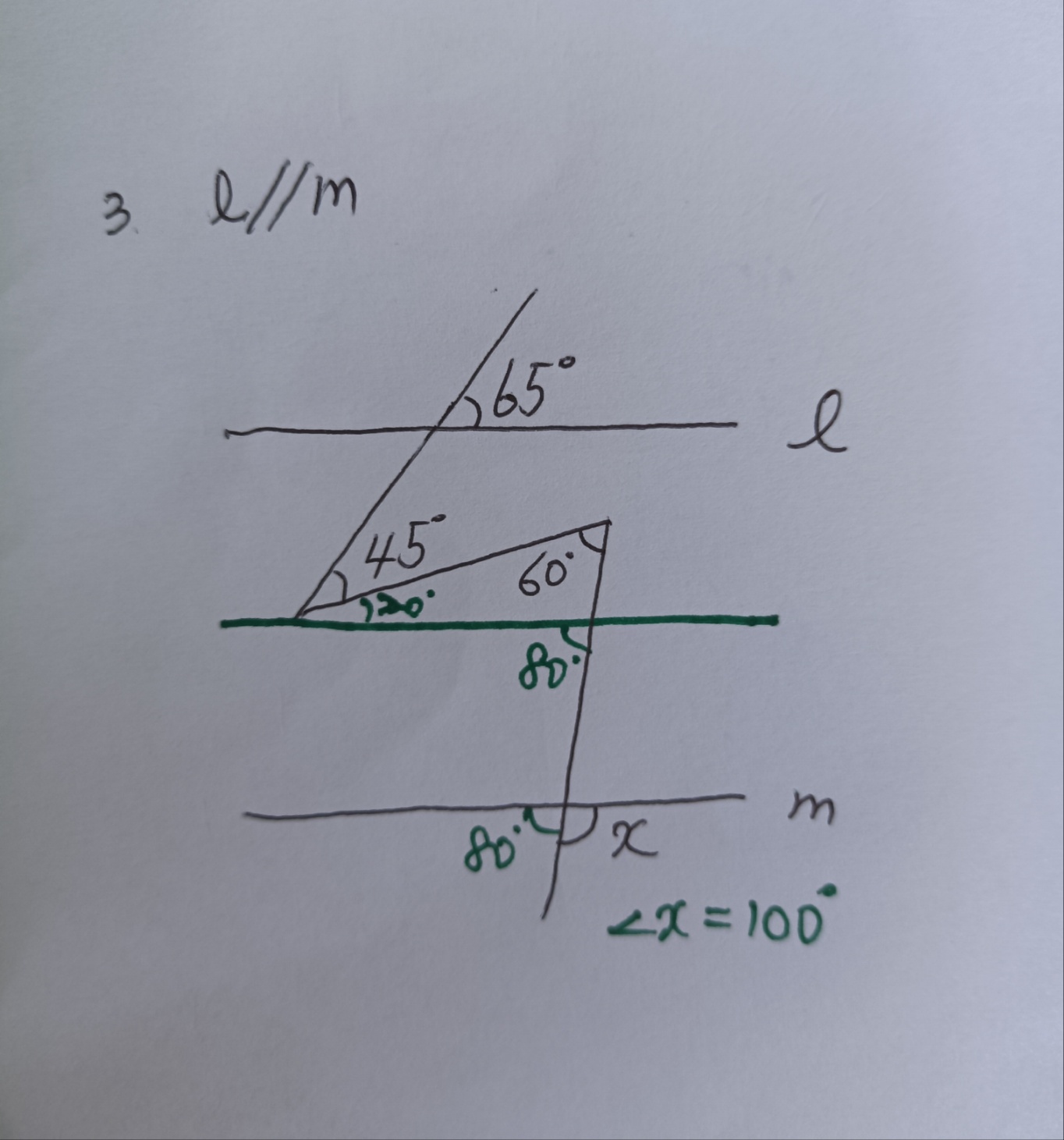 우선 평행선에서 동위각과 엇각을 찾아보면